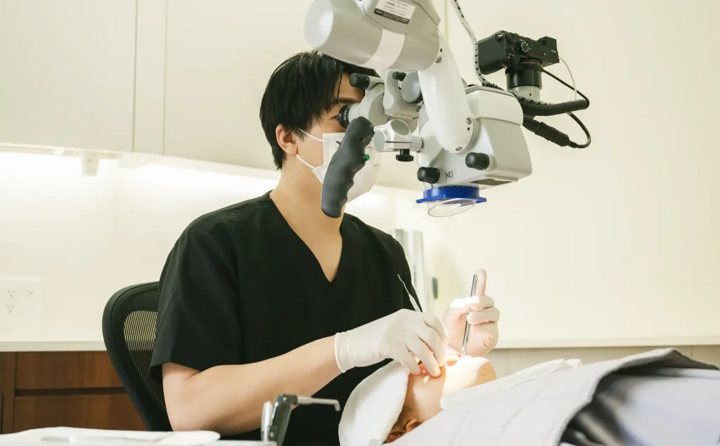 院長の和田は、特に根管治療においてマイクロスコープを使用し、精密な治療を行っています。患者様の歯を可能な限り保存し、健康を維持することに重点を置いています。