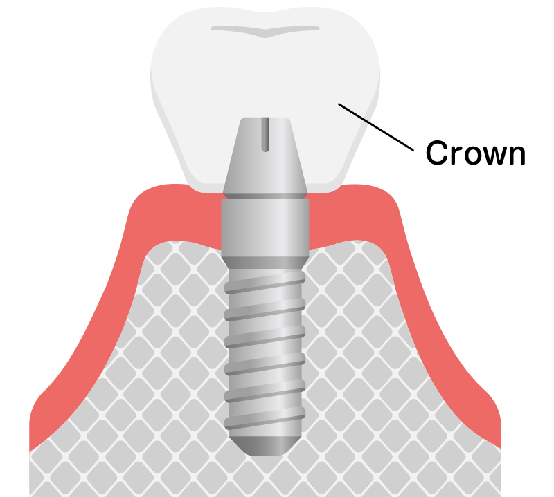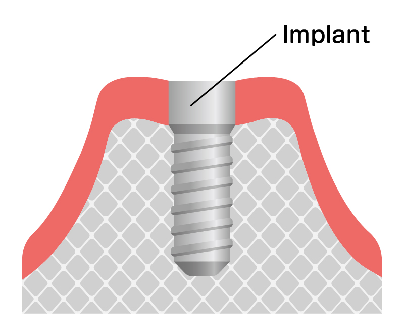 インプラントは骨の中に人工歯根を植え込む手術(簡単なもので15分程度)が必要です。