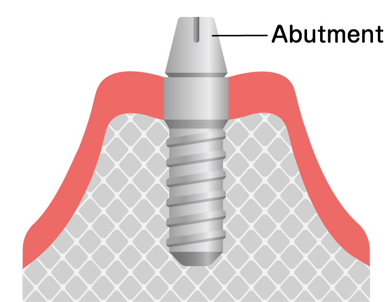インプラントと骨が結合した後、アバットメントと呼ばれる連結部分を装着します。