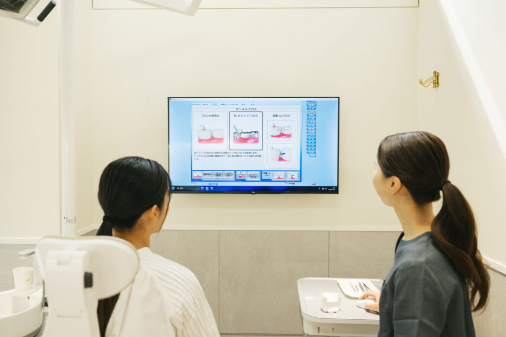 例えば、フロスや歯間ブラシの使用指導、歯磨き指導、食生活のアドバイスなどを行い、患者様が自宅でも効果的なケアを続けられるようサポートします。